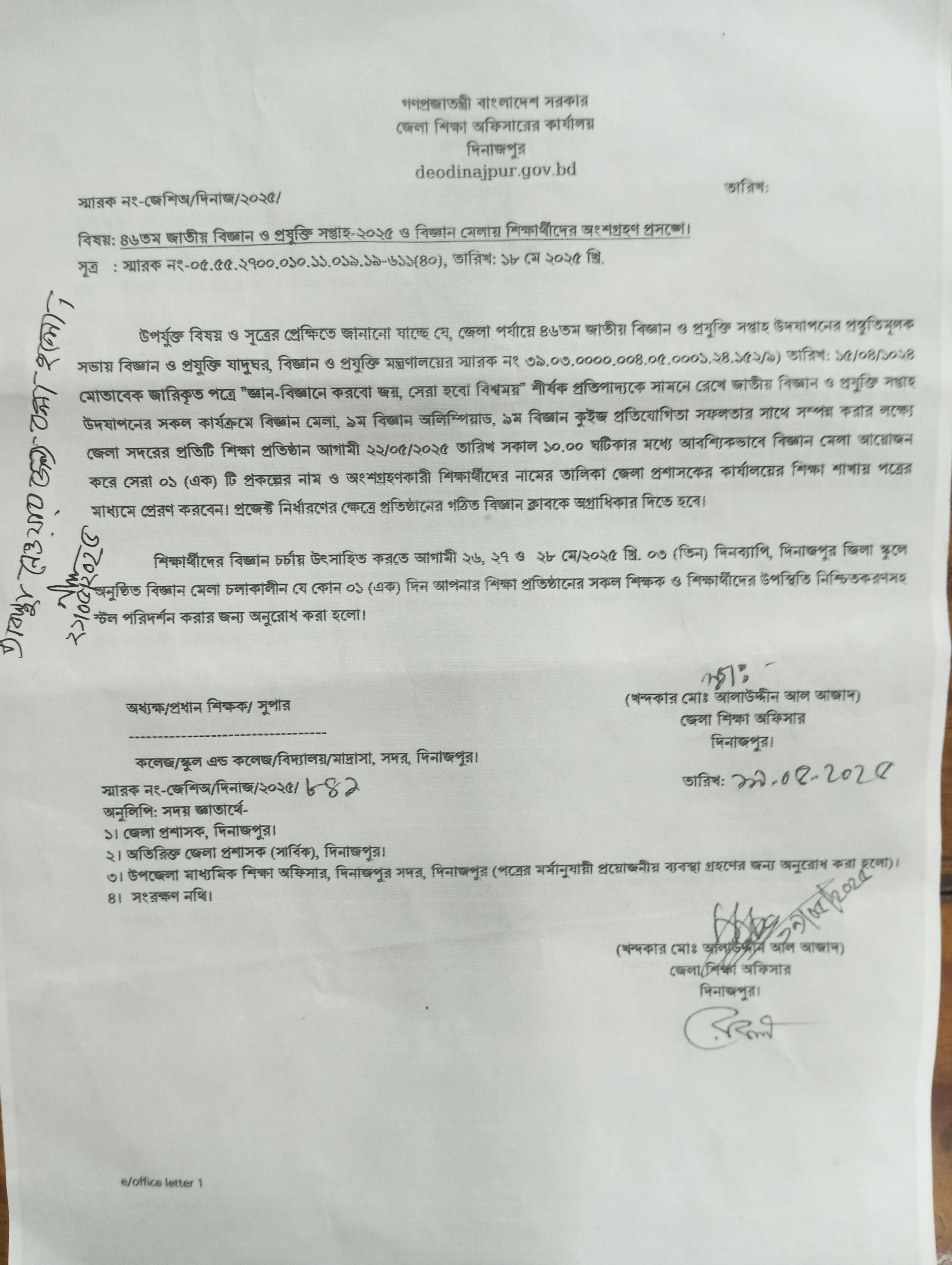 ৪৬তম জাতীয় বিজ্ঞান ও প্রযুক্তি সপ্তাহ -২০২৫ ও বিজ্ঞান মেলায় শিক্ষার্থীদের অংশগ্রহণ প্রসঙ্গে।