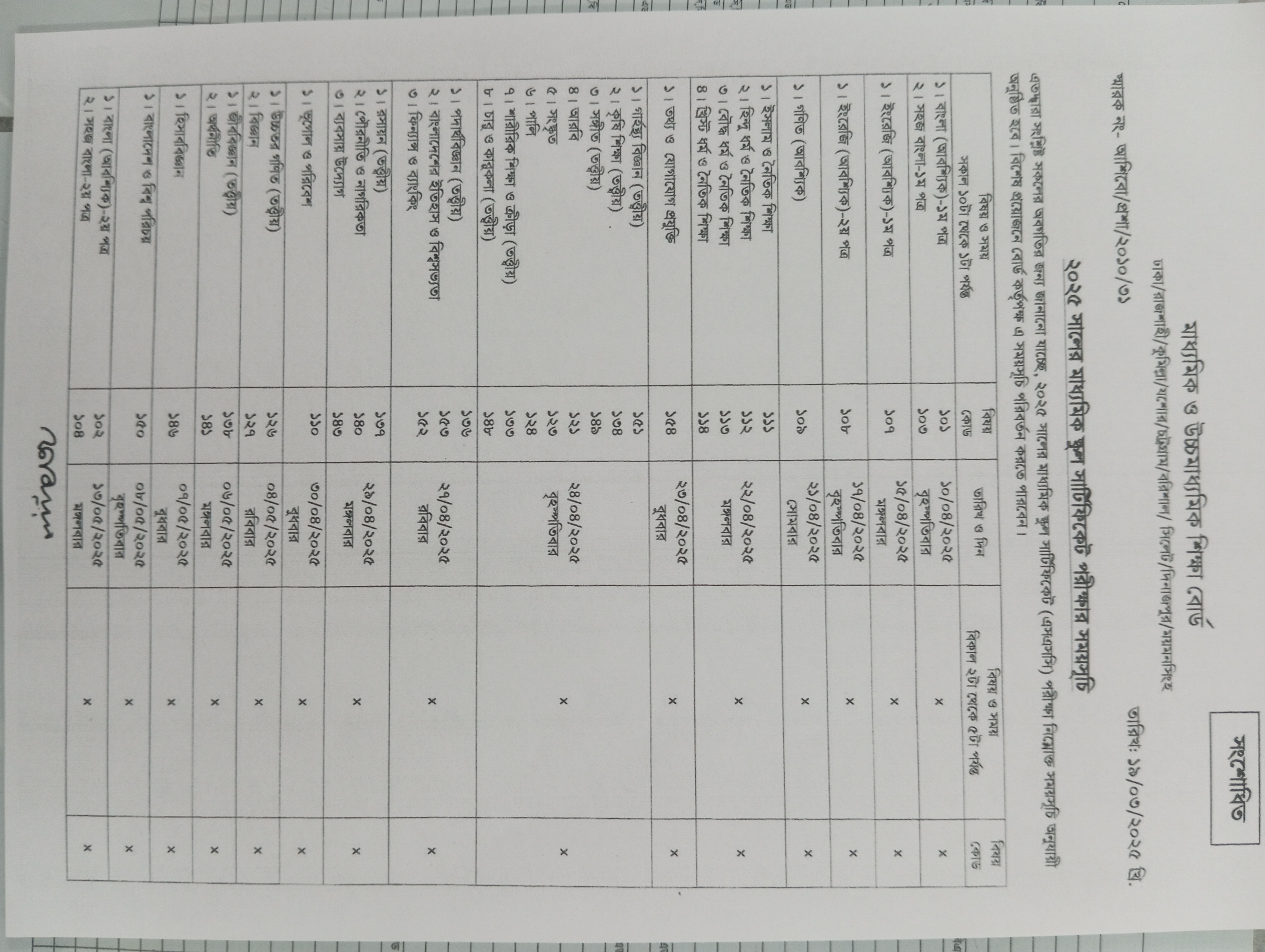 এসএসসির সংশোধিত পরীক্ষার রুটিন