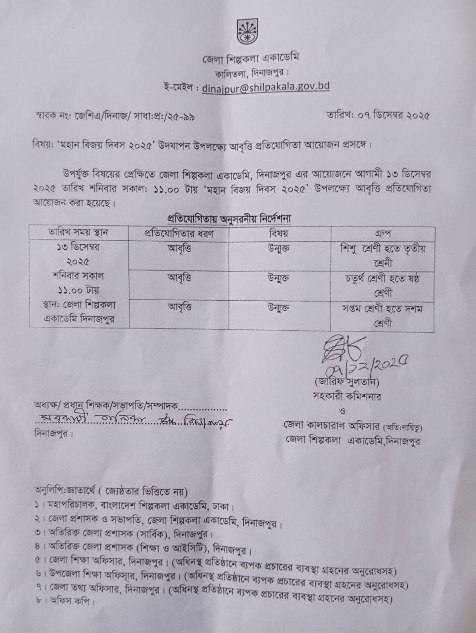 ’মহান বিজয় দিবস ২০২৫’ উদযাপন উপলক্ষ্যে আবৃত্তি প্রতিযোগিতা আয়োজন প্রসঙ্গে ।