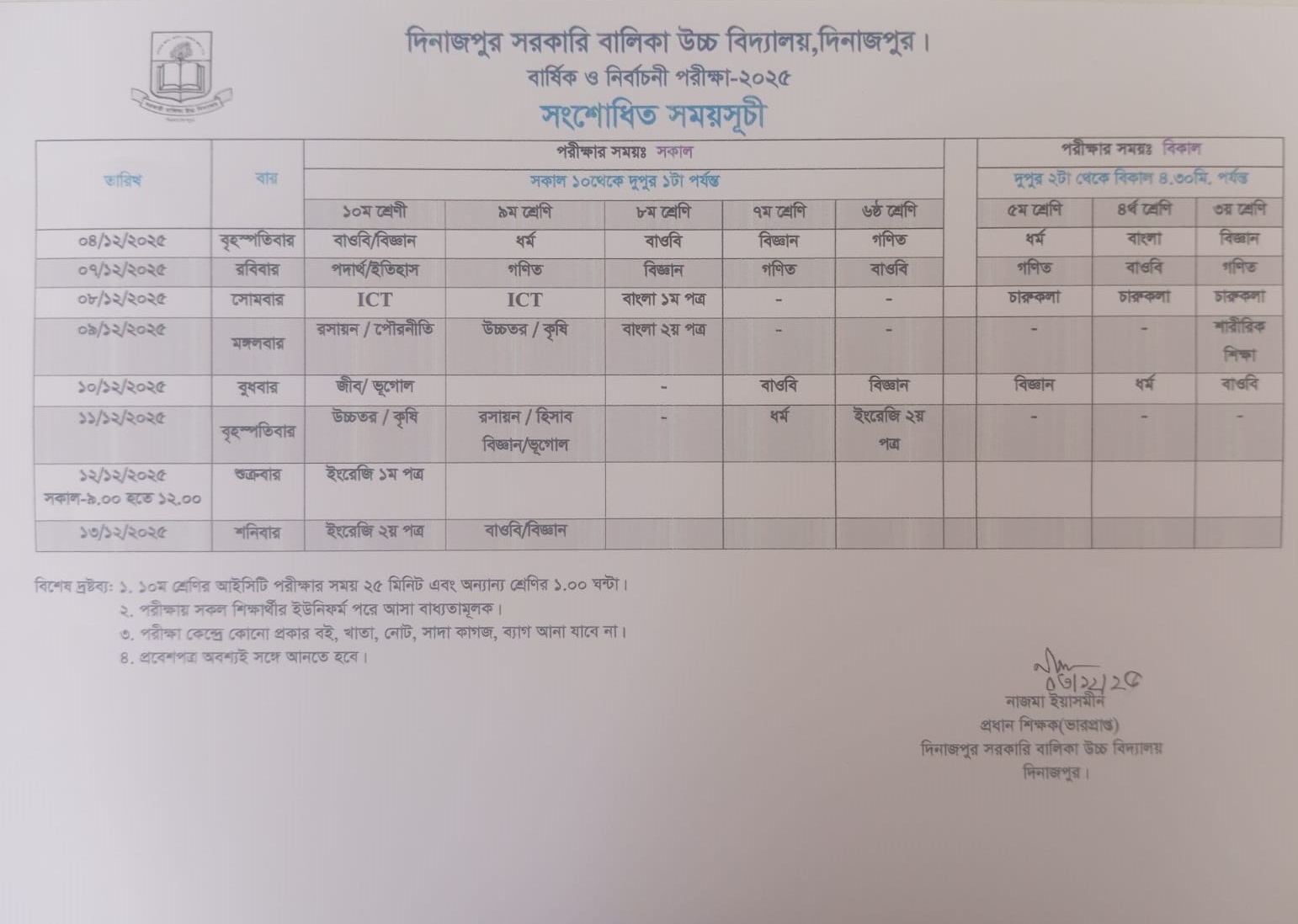 সংশোধিত রুটিন-২০২৫